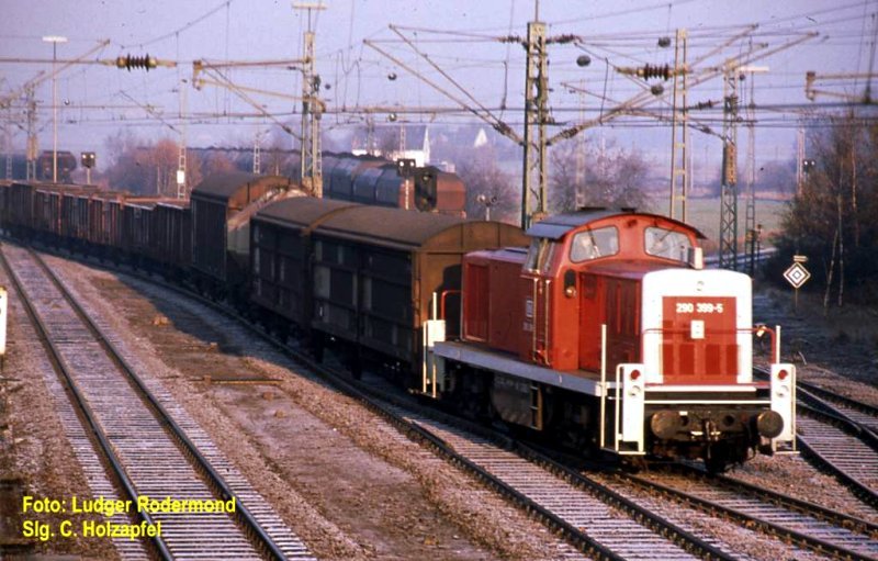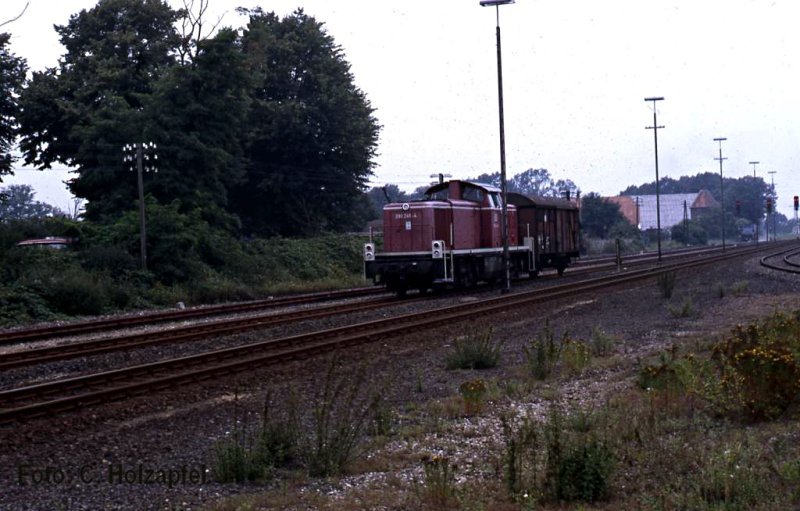 Eine 290 fährt mit einer Übergabe aus Millingen in den Bahnhof Rheinkamp ein