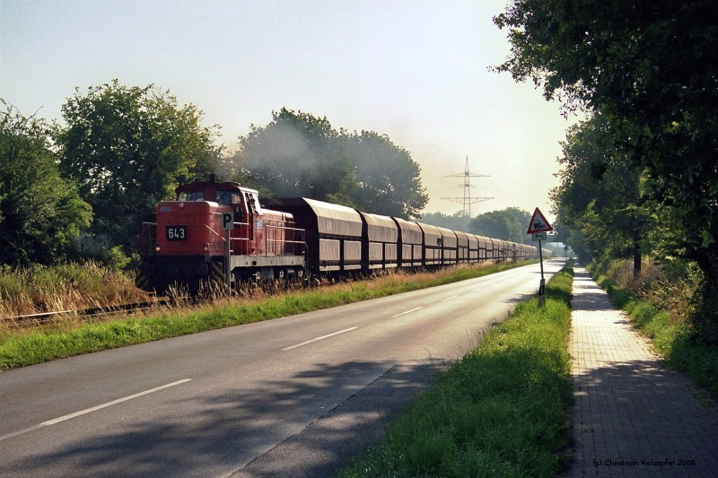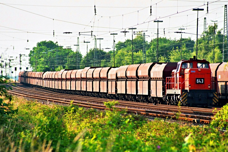 RAG 643 mit einem Leerwagenzug auf dem Weg zum Bergwerk West in Kamp-Lintfort